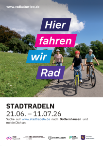 Die Gemeinde Dotternhausen beteiligt sich auch 2026 wieder an der Kampagne „STADTRADELN“ – bereits zum sechsten Mal! Merken Sie sich den Termin vor: